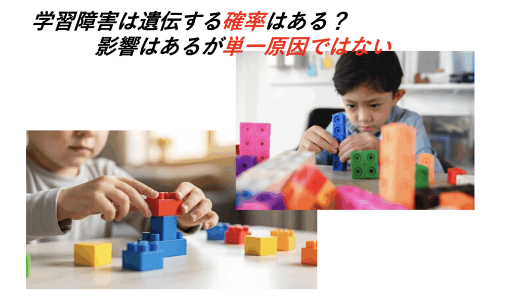 学習障害(LD)は、遺伝的な要因が深く関わっていると考えられていますが、その確率は「必ず遺伝する」という単純なものではないです。